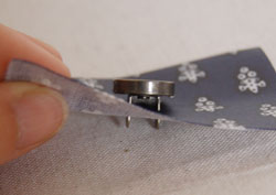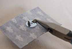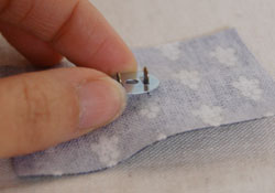 5.ボタンを差し込む 開けた穴にボタンのツメを差し込みます。 |